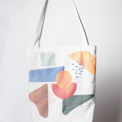 Totebag ini memiliki jenis motif geometric yang sangat unik dengan desain warna yang sesuai dengan Sleep Buddy.